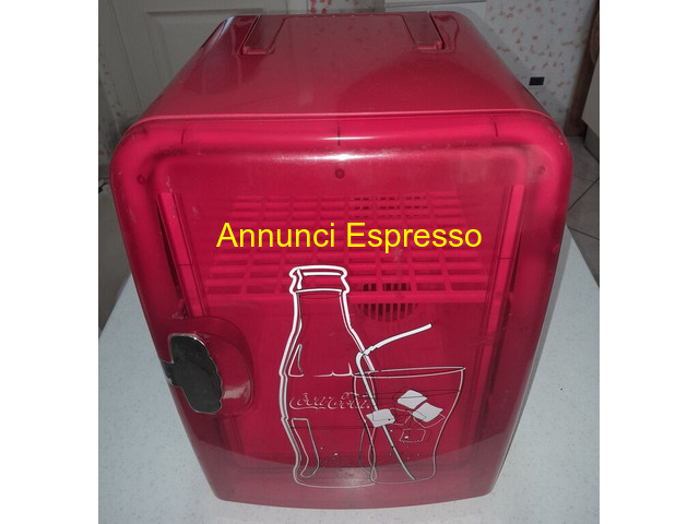 Mini Frigorifero Coca Cola 20 Litri Portatile prezzo EUR.140,00 Mini Frigorifero Coca Cola 20 Litri Portatile e non. Altezza 47 cm cm larghezza 32 cm profondit? 37 Perfettamente Funzionante ed efficace, f? freddo e per mantenere in caldo. Attacco a 220 V che a 12 V per auto camper ecc. . pu? contenere fino a 10 lattine sopra e 10 bottigliette da 1/2 litro sotto o togliendo il piano centrale quattro bottiglie da 1, 5 litri in posizione verticale peso 6, 6 kg. sportello semi trasparente ritiro su Grosseto o spedizione. Grosseto (GR)