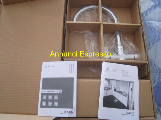 Miscelatore AEG CON ATTACCO ProSource INOX prezzo EUR.120,00 Miscelatore AEG con ATTACCO serbatoio ProSource Pure GYT11012CB finitura cromo-. ProSource di AEG ti permette di avere acqua bollente 24 ore al giorno UTILIZZA SOLO L'ACQUA CHE NECESSITI-ACQUA CALDA, FREDDA E BOLLENTE: RUBINETTO 3 IN 1DESIGN ELEGANTE E PRATICITÀ Elegante cromatura e acciaio inox, che si adatta ad ogni tipo di cucina dalla più moderna alla più rustica IL RUBINETTO E NUOVO MAI MONTATOE E IN VENDITA X MANCATO REALIZZO DI SECONDA CUCINA HA AVUTO UN PREZZO DI EURO 300 VENDO EURO 120 INTRATTABILE INCLUSA EVENTUALE SPEDIZIONE ----PER ULTERIORE INFORMAZIONI TECNICHE RISPONDO SOLA A CONTATTO TELEFON----[NUM]--- Miscelatore per lavabo nuovo, cromato, imballato. Completo di accessori e tubi. Ideale per ristrutturazione bagno o sostituzione. Design moderno e funzionale. Marca non specificata. Disponibile in scatola originale. Carbonara di Nola (NA)