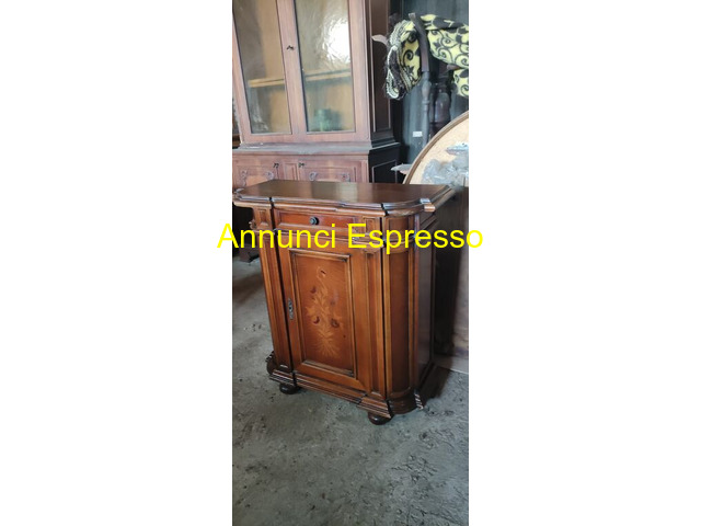 mobile da soggiorno basso cm. 80 lungh. x 35 pr prezzo EUR.300,00 Mobile da soggiorno basso cm. 80 lungh. x 35 prof. x altezza 85 Mobile in legno massello, stile classico, consolle o tavolino con dettagli intagliati. Ottimo stato, per arredamento d'epoca o moderno. Dimensioni compatte, ideale per soggiorni o ingressi. Possibile utilizzo come supporto per oggetti decorativi. Desio (MB)