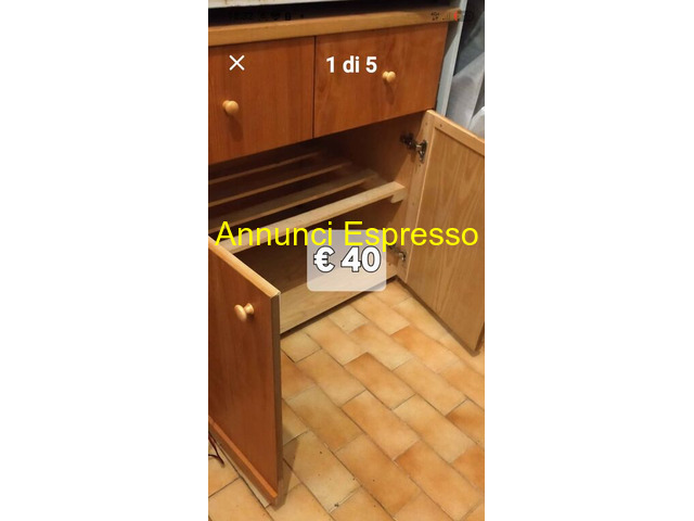 Mobiletto in legno prezzo EUR.40,00 Mobiletto in legno con due cassetti e 2 ante, in buone condizioni. Prezzo 40 euro. Ritiro a carico dell'acquirente a MARTA PROV. VITERBO EURO 40 Marta (VT)