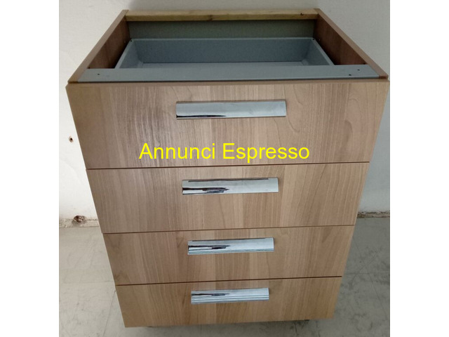 Mobili Cucina Basi casse varie misura 85/90 cm. prezzo EUR.90,00 Mobili Cucina Basi casse varie misura 85/90 cm. in altezza piedino da 10 a 15 cm. larghezza 60 profondit? 60 cm. cassettiera , sotto lavello e 2 mobili con piano interno uno sinistro e altro destro . (prezzo cadauno) cassettiera 130 euro in ottimo stato componibili a proprio piacere ritiro su Grosseto Mobiletto in legno con quattro cassetti, finitura chiara e maniglie metalliche. Perfetto per riporre oggetti. Usato. Grosseto (GR)