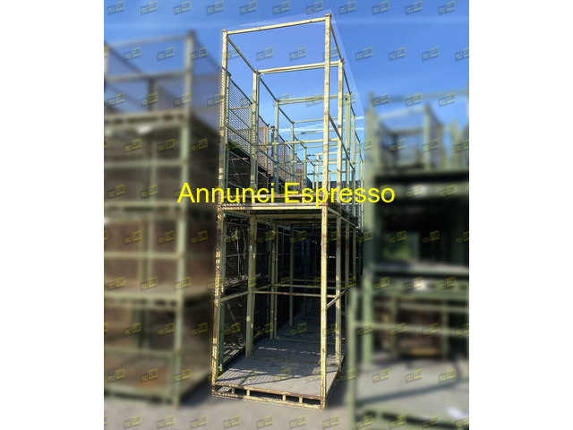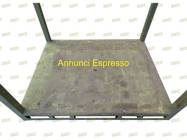 piattaforme con sponde sovrapponibili tipo pesanti prezzo EUR.1.111,00 Pedane o strutture mobili sovrapponibili ad incastro in acciaio verniciato colore verde serie pesante. Hanno una duplice funzione: A) utilizzati come pallet da trasporto B) per la realizzazione di scaffalature da magazzino cos? da non dover ricaricare la merce. Sono utilizzati per lo stoccaggio e movimentazione di merce ingombrante. Hanno le slitte anti ribaltamento, sono costruiti con tubolare d?acciaio sezione quadra mm60x60, la base ? in lamiera liscia con sottostruttura di rinforzo che funge anche da guida per le forche del carrello elevatore. I correnti o traversi (2 sui lati corti e 2 su un lato lungo) sono in tubolare d?acciaio sezione quadra da mm 40x20. Lotto di BUONA QUALITA?: possibili e limitati segni di ruggine superficiale, il tutto come da documentazione fotografica. Misure mm 1500 x 1200 h2480, disegno tecnico su richiesta. Proposti da Polycube srl riferimento codice MP054- Struttura metallica modulare, ideale per stoccaggio Poppi (AR)