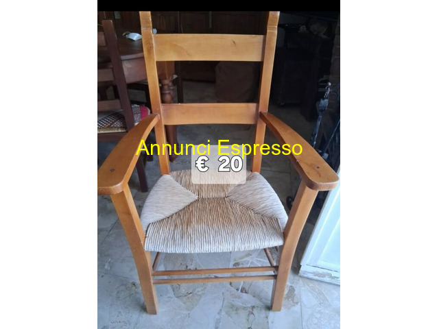 Poltrona legno e paglia prezzo EUR.20,00 Sedia in legno, usata, con braccioli e seduta in paglia Prezzo 20 euro. Ideale per arredamento rustico o classico. Ritiro a arico dell'acquirente a MARTA PROV . VITERBO Marta (VT)