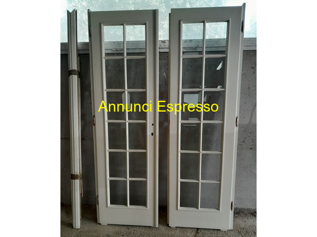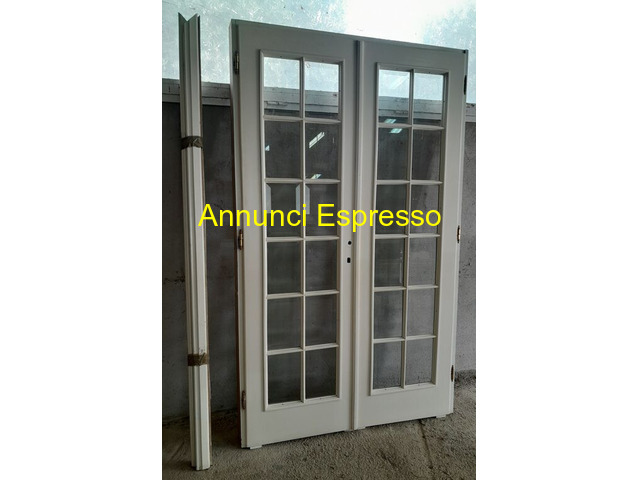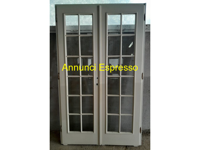 Porta a Vetri all'Inglese a doppia anta in legno prezzo EUR.600,00 Porta a Vetri all'Inglese a doppia anta in legno laccato in ottimo stato, misura a telaio esterno altezza 210 x larg. 127 x larg. telaio 10, 5 cm. completa di tutto. Comprensivo di coprifili (mostre) perimetrali largh. 7cm. I vetri cristalli sono molati sfaccettati tutti intorno. Ritiro su Grosseto , non si esegue spedizione. Possibilita di trasporto e montaggio nelle vicinanze da concordare. Porta doppia in legno con vetri, colore bianco, stile classico. adatta per interni. Utilizzo: separazione ambienti. Grosseto (GR)