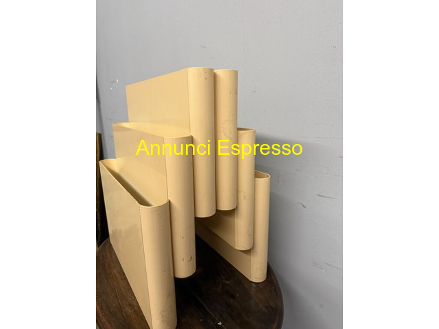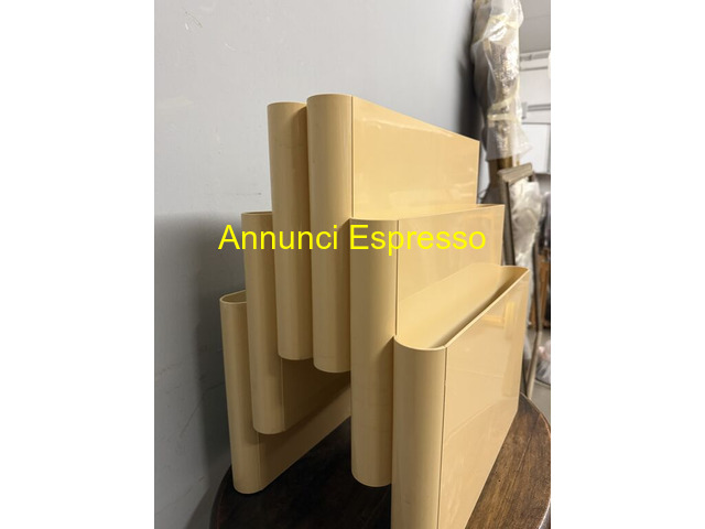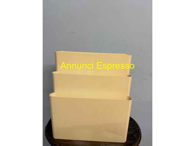 Portariviste Giotto Stoppino mod. 4676 prezzo EUR.250,00 Portariviste Giotto Stoppino mod. 4676 in materiale plastico. Con marchio del produttore. Produzione KARTELL, anni '70. leggere usure normali segni del tempo. Color crema, oggetto di design unico. Altezza 45cm, larghezza 28cm, profondità 40cm. Viterbo (VT)