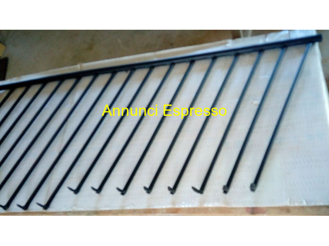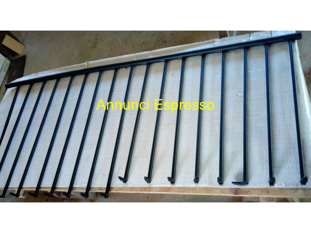 Ringhiera Balaustra Pianerottolo Scala 13 gradini prezzo EUR.190,00 Ringhiera Balaustra Pianerottolo Scala 13 gradini tutta componibile modificabile e da rimontare a proprio piacimento misure: lunghezza 285 x 113 composta n?8 pali misura 113 cm e n? 9 pali misura 125 cm. (possibilit? di accorciali) Diametro corrimano 5 x 285 cm. in pvc ripieno legno e canne in metallo con accessori in pvc completa di tutti i suoi accessori ritiro su Grosseto o spedizione. Ringhiera metallica nera con barre verticali, ideale per balconi o scale. Ottime condizioni, dimensioni standard. Grosseto (GR)