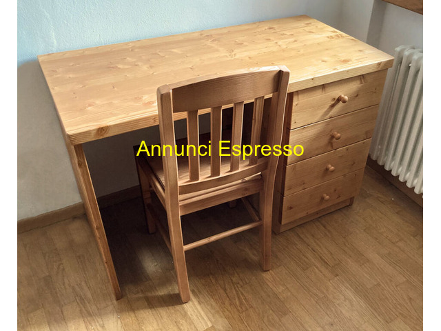 scrittoio abete prezzo EUR.1.200,00 Scrivania dimensione lunghezza cm 120, profondit? 58 e altezza cm 77, con annessa una cassettiera a 4 cassetti. In abbinato abbiamo una sedia modello Marina sempre in abete con seduta in legno Trento (TN)