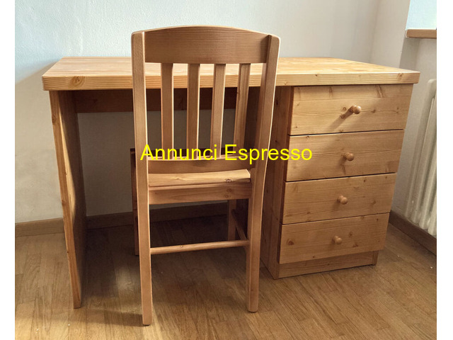 scrivania abete con sedia prezzo EUR.1.200,00 Scrivania dimensione 120x58, con cassettiera a 4 cassetti e sedia marina, il tutto in abete Trento (TN)
