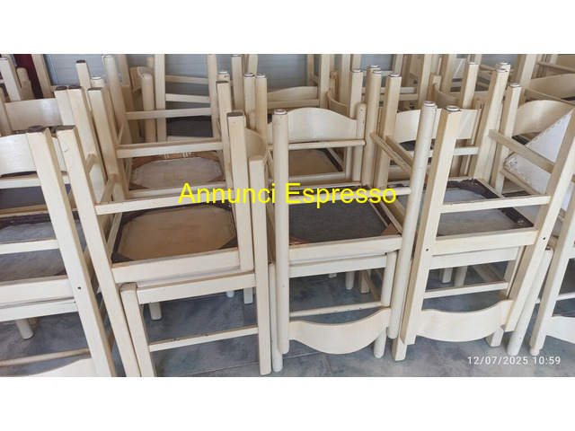 Sedia in legno con seduta ecopelle come nuove prezzo EUR.45,00 Sedia in legno chiaro, con sedile imbottito beige. Design semplice e funzionale. Ottima per cucina o sala da pranzo. Usata, in buone condizioni. Seduta imbottita in vilpelle fatta sei mesi fa Disponibile circa 90 pezzi Due modelli tondo o quadro Colore originale noce scuro Possiamo fare anche fattura Cirò Marina (KR)