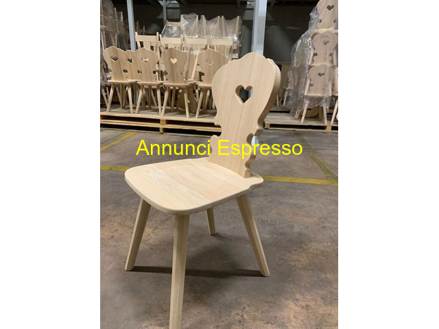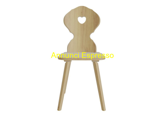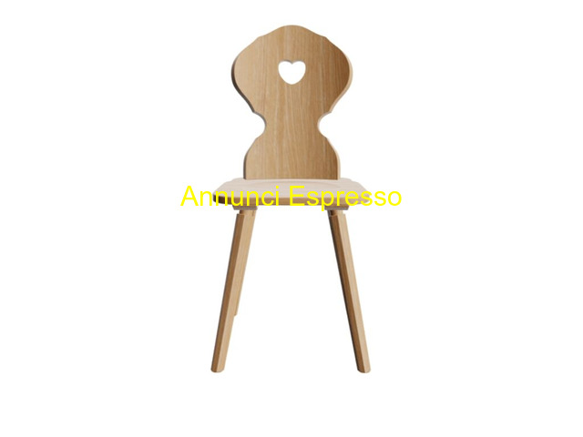 Sedie tirolesi prezzo EUR.130,00 Sedie tirolesi usata come pezzo unico per dare il tocco necessario al tuo ristorante, bar, , pizzeria, agriturismo, baita , rifugio, alloggi di montagna, per contract/horeca. In base al colore scelto potrai dare alla sedia un gusto classico rustico con le tinte base mentre con le tinte anilina e soprattutto il bianco lo stile shabby chic. Sedia in legno chiaro, schienale con cuore, design semplice ed elegante, ideale per bambini. Bergamo (BG)