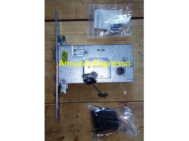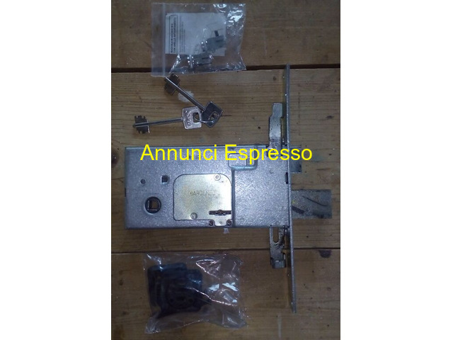 Serratura Cisa triplice a 3 punti di chiusura com prezzo EUR.50,00 Serratura Cisa triplice a 3 punti di chiusura completa modello [NUM] da incasso per porte o finestre in Legno, Alluminio, Ferro, completa di tutto Misure Catenaccio in acciaio, Scrocco reversibile , Frontale mm. 25 , Scatola mm. 165 x 82 Zincata , Fornita con 2 chiavi , 4 mandate, ritiro su Grosseto o spedizione. Serratura meccanica con chiave, inclusi accessori e pezzi di ricambio. Materiale metallico, ottima per porte. Aggiungi sicurezza alla tua casa. Grosseto (GR)