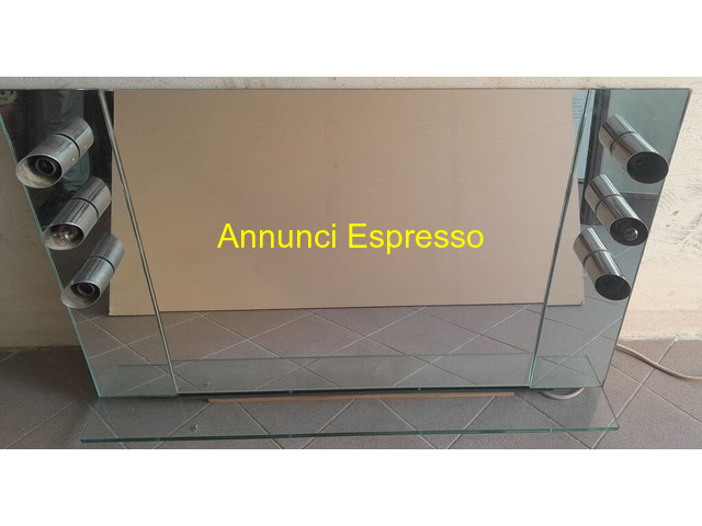 Specchio da Bagno con 6 lampadine orientabili prezzo EUR.100,00 Specchio da Bagno con 6 lampadine orientabili da appendere al muro si pu? installare senza mensolina in vetro , o con mensolina, in uno stato perfetto nessuna scheggiatura o parte rovinata perfettamente funzionante attacco lampadine e14 misure altezza 61 cm lunghezza 99 cm. 3 cm. spessore da muro e con mensolina 13 cm. utile mensolina 10 cm. ritiro su Grosseto. Grosseto (GR)