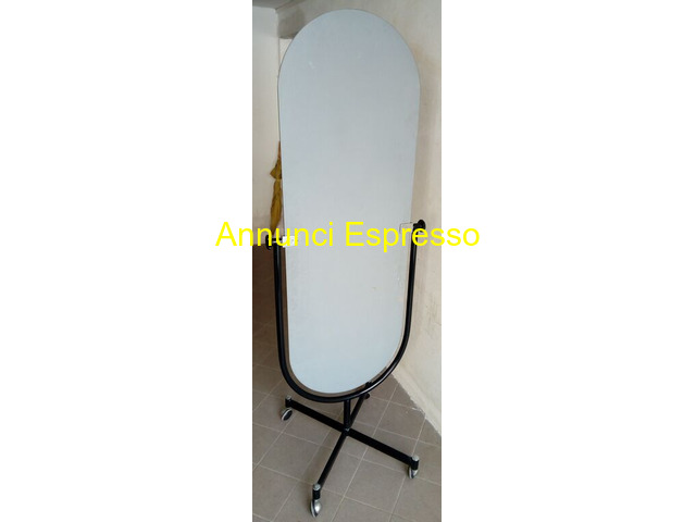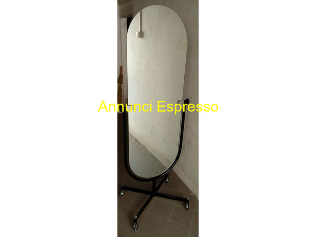 Specchio girevole con ruote in perfetto stato prezzo EUR.140,00 Specchio girevole con ruote in perfetto stato struttura in tubolare Nero in metallo misura specchio 50 x 145 cm, misura completa di struttura 175 x 62 cm. specchio vetro temperato, ritiro di persona solamente su Grosseto. Grosseto (GR)