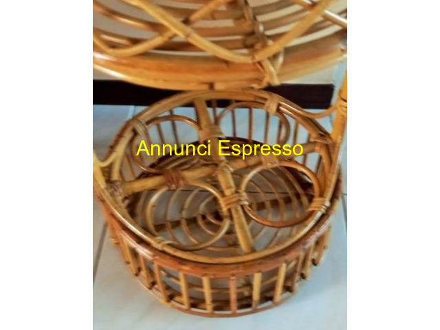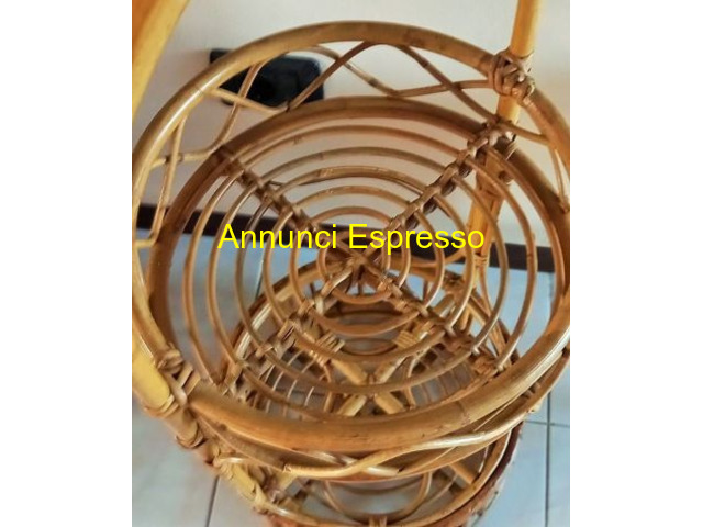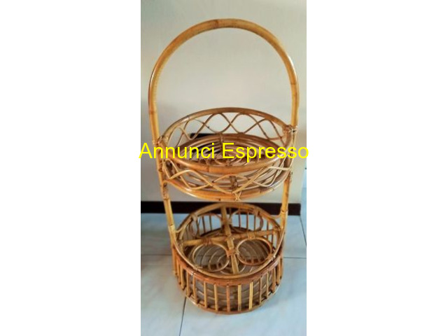Tavolino Bar bambu vintage anni' '60 con un lungo prezzo EUR.50,00 Tavolino Bar bambu vintage anni' '60 con un lungo manico curvo per il sollevamento . Dotato di un ripiano d?appoggio superiore ed un portabottiglie inferiore(fino a quattro bottiglie) . In ottimo stato poco usato come da foto . Dimensioni : alt. cm. 70 al manico ? diam . cm. 37 Vendo a Euro 50 . Non spedisco . Gradito contatto telefonico wapp . [NUM] Lodi (LO)