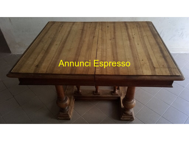Tavolo Antico 1800 grezzo in legno Noce e Abete, prezzo EUR.240,00 Tavolo Antico 1800 grezzo in legno Noce e Abete, apribile senza prolunghe, se ne possono mettere fino a 3 da 50 cm. ognuna, ottenendo misura massima tavolo 98 x 268 . Tavolo perfettamente funzionante, misure 118 x 98 x altezza 76 cm. ritiro su Grosseto Tavolo quadrato in legno massello, superficie in legno a doghe, base solida con colonne decorative, stile rustico, adatto per cucina o sala da pranzo. Grosseto (GR)
