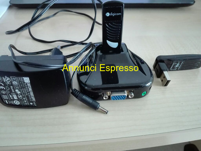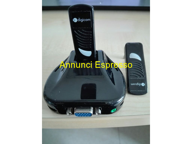 TRASMETTITORE/RICEVITORE DIGICOM 8E4454 USB WAVE A prezzo EUR.30,00 USB Wave A/V, per collegare il nostro TV LCD al computer senza cavi, in ll set ? composto da un dongle USB da collegare al computer e di un ricevitore da collegare al TV, monitor o proiettore via cavo HDMI o VGA. Trasmettitore e ricevitore sono gi? preconfigurati di fabbrica, ? sufficiente installarli e sono immediatamente pronti a funzionare. Un modo semplice e immediato per guardare i film. USB Wave AV supporta le modalit? video mirroring, visualizzando sul TV ci? che appare sul monitor del computer, oppure di video extension, si pu? ad esempio navigare Internet sul monitor del computer mentre si proietta un film sul televisore, contemporaneamente e senza interferenza alcuna! USB Wave A/v Nova Milanese (MB)
