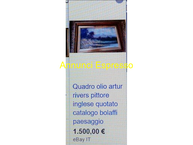 tre quadri due di Castrovilli uno di Arthur Ryvers prezzo EUR.350,00 Trattasi di due paesaggi del pittore GIUSEPPE CASTROVILLI , Olio su Compensato ben tenuti, quotato su Bolaffi misure 11x21, con la cornice 35x45 su misura. Vera occasione , disponibilità immediata - sotto prezzo- E quadro del pittore Inglese Arthur Ryvers , formato 13x18 olio su tavoletta di legno. Inserito nel Bolaffi , molto conosciuto a livello internazionale . Sotto prezzo , Disponibilità immediata , occasionissima ? su Roma consegna brevi mano- tutti e tre al prezzo stracciato di Euro 350 ----trattabili Roma (RM)