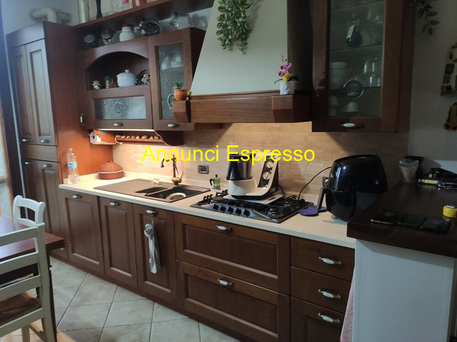 Vendo CUCINA IN LEGNO MASSELLO prezzo EUR.2.800,00 Vendo CUCINA IN LEGNO MASSELLO compresa di tavolo sedie e mensole; NO forno, NO lavastoviglie, NO microonde. Ripiano in pietra naturale, Travertino, Misure; lato A 4 mt. Lato B mt 3, 40. Prezzo 2800, 00 E. Solo da smontare e caricare. Cucina moderna in legno con elettrodomestici, lavabo, piano cottura e mobile frigorifero. Spazio Zola Predosa (BO)