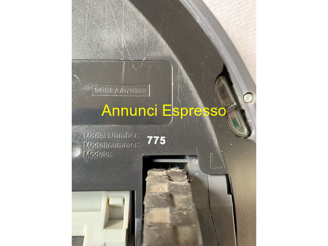 Vendo i-Robot Roomba 775 Pet , a ? 65,00. prezzo EUR.65,00 Vendo robot aspirapolvere i-Robot Roomba 775 Pet adatto per chi ha animali domestici in casa, molto efficiente e perfettamente funzionante, vendo a causa di acquisto modello più recente. In dotazione tutti gli accessori di serie, in aggiunta 3 spazzoline frontali. Caratteristiche: ? Pulizia di tutti i tipi di pavimenti duri e tappeti ? Distributore speciale di peli di animali domestici in PET ? Sistema di pulizia laterale negli angoli ? Sistema di aspirazione AeroVac ? Filtrazione tramite doppio filtro di tipo HEPA ? Indicatore di contenitore sporco pieno ? Sistema ANTIGROVIGLIO contro l'aggrovigliamento di cavi e frange di moquette ? Rilevamento ottico dello sporco ? Funzione di temporizzazione della pulizia ? Caratteristiche del muro virtuale (2 muri virtuali in dotazione) ? Caratteristiche di Halo ? Paraurti sagomato con tocco lento ? Sensori contro la caduta dalle scale ? Telecomando ? 65, 00. Spedizione solo in Italia, costo spedizione ? 15, 00. Trieste (TS)