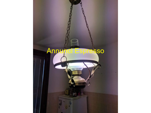 Vendo Lampadario A Neon da cucina. prezzo EUR.85,00 Vendo Lampadario A Neon da cucina. Diametro 50, Tenuto bene e funzionante. prezzo 85, 00 ? escluso spese di spedizione. Lampadario vintage in ottone e vetro. Dotato di catene decorative e design elegante. Ideale per ambienti classici e d'atmosfera. Misure Zola Predosa (BO)