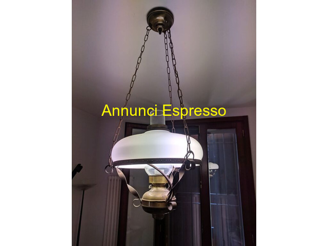 Vendo Lampadario A Neon da cucina. prezzo EUR.85,00 Vendo Lampadario A Neon da cucina. Diametro 50, Tenuto bene e funzionante. prezzo 85, 00 ? escluso spese di spedizione. Lampadario vintage in ottone e vetro. Dotato di catene decorative e design elegante. Ideale per ambienti classici e d'atmosfera. Misure Zola Predosa (BO)