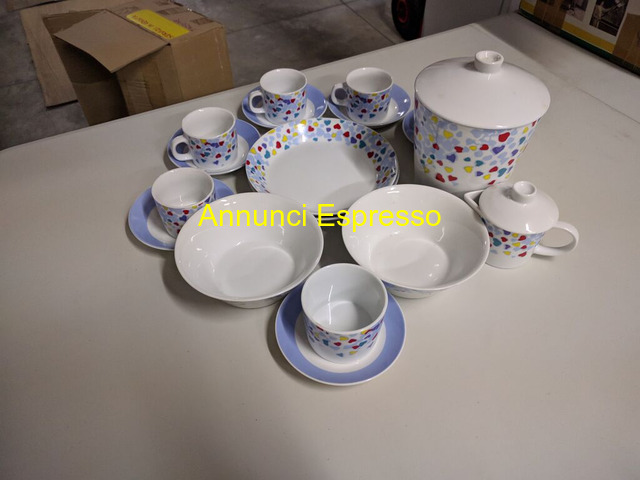 Vendo servizi da tavola Tutto a 100,00 prezzo EUR.100,00 Vendo servizi da tavola Tutto a 100, 00; n 11 calici Royal Leerdam Pianobar, n. 5 53cl 18 e n. 6 41cl 14; 1 Piatto da portata Fiorato Sebring; 1 Zuppiera con coperchio Famag + 1 Zuppiera Made in Poland + 1 Salsiera con cucchiaino ; 1 Teiera giapponese + 1 Zuccheriera marrone; 1 Oliera + 1 Saliera + 5 Portatovaglioli da tavola; n 7 Tazzine + 12 Tazze grandi, Kinsley Dettagli d, Autore; n 1 Bicchiere a coppa; n 2 Piatti Grandi Dorati Jnka Seltman; Set completo NAJ-OLEARI composto da; Tazzine n, 2 Piattini una Teiera e una Zuccheriera Piatto di ceramica con decorazione floreale in tonalità pastello e bordo dorato. Ideale per collezionismo o uso quotidiano. Zola Predosa (BO)