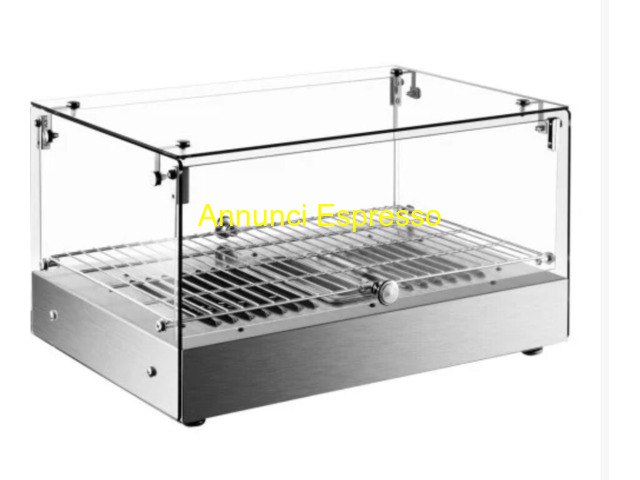 Vetrinette da banco per cornetteria prezzo EUR.580,00 Vetrina in vetro temperato e polipropilene trasparente con base nera. Ideale per esposizione oggetti. Made in Italy. Dimensioni varie. Vetrina per alimenti in acrilico, due piani, con croissant e prodotti da forno esposti. Ideale per pa Imperia (IM)