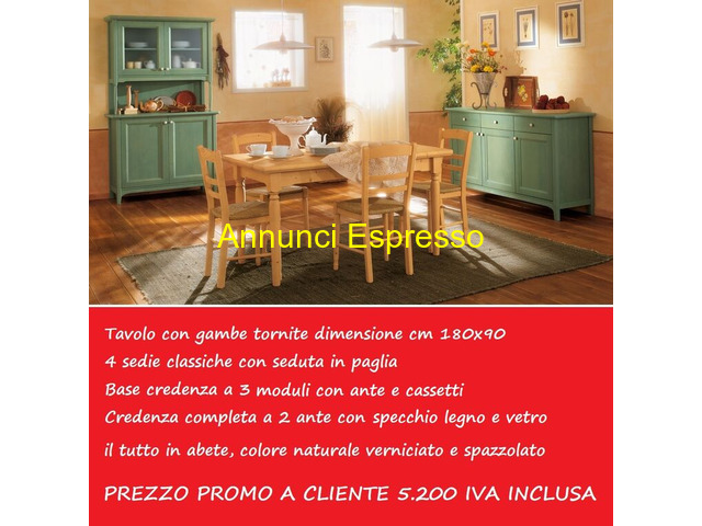 zona giorno abete prezzo EUR.5.200,00 blocco zona a giorno in abete, con: tavolo con gambe tornite abbinato a 4 sedie base credenza a 3 moduli con ante e cassetti credenza completa a 2 ante con specchio legno e vetro PREZZO PROMO 5. 200 IVATO Trento (TN)