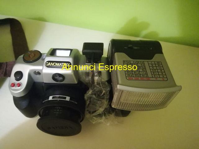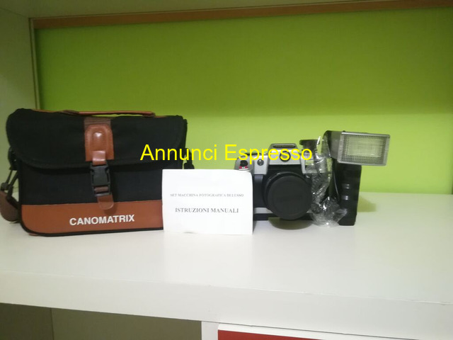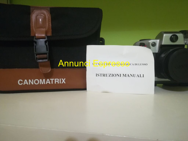 Set macchina fotografica vintage Canomatrix Canomatrix prezzo EUR.1,00 Set macchina fotografica di lusso CANOMATRIX vintage: - tipo: 35 mm focalizzazione automatica; - misura della pellicola: 24x36 mm; - lente: 50 mm; - autoscatto: 5-14 secondi; - caricamento pellicola: automatico; - batterie: 2xAA alkaline; - dimensioni: 161x113x114 mm; - flash; - manuale di istruzioni. La macchina fotografica si presenta in ottimo stato e perfettamente funzionante, comprensiva di custodia originale. Per info [NUM], no mail. Contattare solo se interessati. Macchina fotografica Canon con borsa, accessori e flash. Ottimo stato, ideale per foto professionali o amatoriali. Marca Canon, modello non specificato. Completa di istruzioni e accessori. Perfetta per appassionati di fotografia. Campobasso (CB)