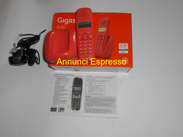 cordless Gigaset A 150 Gigaset bianco o viol Gigaset A 150 prezzo EUR.14,00 Si vende come nuovo, n. 2 cordless di marca Gigaset modello A150. Attualmente dei cordless Gigaset A 150 come disponibilità di colori: bianco fragola Contenuto della confezione 1 Portatile Gigaset A 150; 1 cavo di linea; 1 stazione base Gigaset A150; 1 alimentatore per base. Prodotto come nuovo, non si fornisce nessuna garanzia. A 14, 00 euro Arqua\' Polesine (RO)