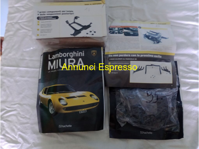 Modellino da costruire della Lamborghini Miura prezzo EUR.1.300,00 Modello Lamborghini Miura 1: 8 completo di scatola originale e manuale. Include dettagli tecnici e schede informative. Oggetto da collezione in ottime condizioni. Perfetto per appassionati di automobili e modellismo. Adatto per esposizione o regalo. Completo di tutti i 100 fascicoli ancora sigillati e con 4 volumi della storia della Lamborghini e con il DVD per le spiegazioni del montaggio del modellino prodotto dalla Hachette. . per ulteriori informazioni o foto telefonare a Fiorenzo. . . con consegna a vista di persona e non tramite posta o corriere in modo da non avere poi dei reclami. . . . . . grazie Verghereto (FC)