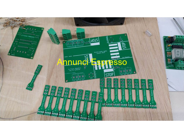 Modellino di semaforo per esercitazioni di program prezzo EUR.40,00 Vendo modellino di semaforo per esercitazioni di programmazione con Arduino (modificando delle resistenze) oppure PLC. Incrocio di due strade con due chiamate pedonali a chiamata. Si possono fare esercizi con real time clock e interrupt. Testato con i PLC Siemens. Ottimo anche per scuole, docenti, laboratori e autodidatti. Richiedi il kit, montato o da montare. Spedizione standard compresa, in busta gialla pluriball, in tutta Italia, a quaranta euro. Scheda elettronica con luci LED, connettori e cavi per progettazione e prototipazione. Ideale per hobby elettronici e apprendimento. Compatibile con vari componenti elettronici. Padova (PD)