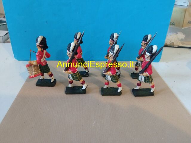 Soldatini scozzesi in parata prezzo EUR.50,00 I soldatini sono in gesso autocostruiti nello stile dei figurini in pasta degli anni '40 - '60 e sono alti 9 cm compreso il piedistallo. Il costo di spedizione è di 6 euro con tracking tracciabile. Per maggiori dettagli telefonare Terrasini (PA)