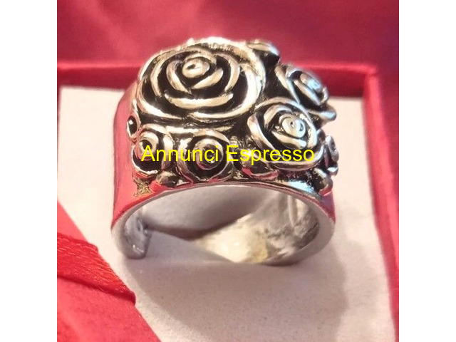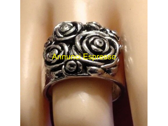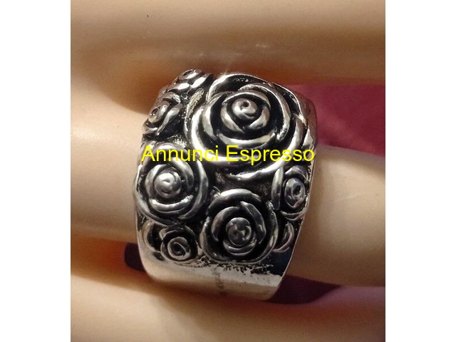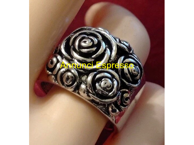Anello - Fascia in Argento 925 prezzo EUR.65,00 ANELLO - FASCIA IN ARGENTO 925 RODIATO CON DESIGN DI ROSE, STILE ELEGANTE, OTTIMO COME REGALO ADATTO A DIVERSE OCCASIONI. LAVORAZIONE ARTIGIANALE IN RILIEVO. ALTA RIFINITURA E MANIFATTURA. MISURA 18 Caltanissetta (CL)