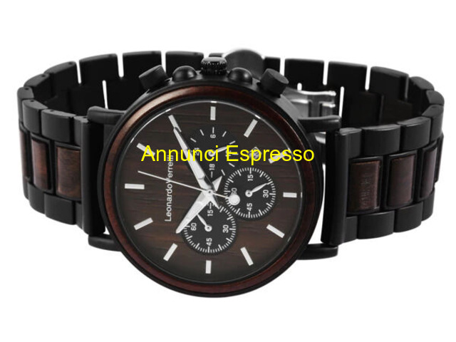 Cronografo in legno Leonardo Verrelli prezzo EUR.115,00 Orologio da uomo con cinturino in acciaio inossidabile e dettagli in legno. Design elegante e moderno, movimento cronografo. Adatto per uso quotidiano e occasioni formali. Marca sconosciuta. Condizioni nuove. Vittorio Veneto (TV)