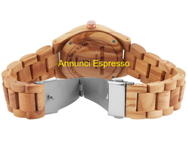 Orologi Orologio da donna in legno d'ulivo prezzo EUR.50,00 Orologio in legno con bracciale in legno a maglie. Cassa rotonda con fondo in acciaio, chiusura a fibbia. Design naturale ed ecologico. Perfetto per amanti di stili unici e sostenibili. Vittorio Veneto (TV)