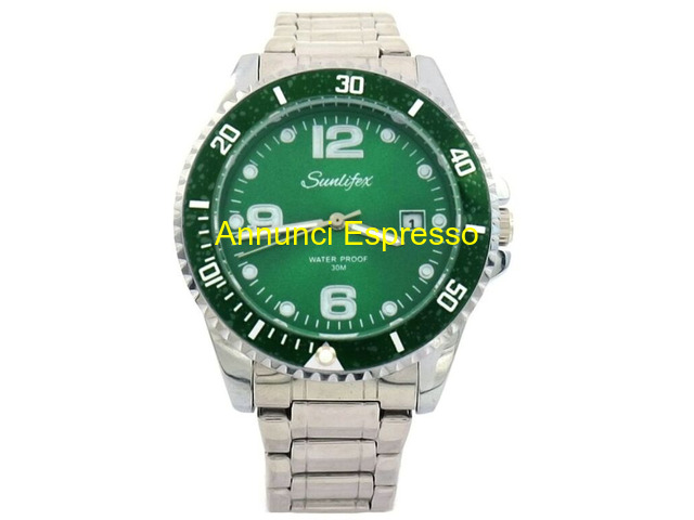 Orologio al quarzo con Data 40mm prezzo EUR.12,00 Orologio marca Sunlight, quadrante verde, bracciale in acciaio inox, resistente all'acqua. Design sportivo, calendario e numeri luminosi. Adatto per utilizzo quotidiano e attività all'aperto. Ottimo stato. Vittorio Veneto (TV)