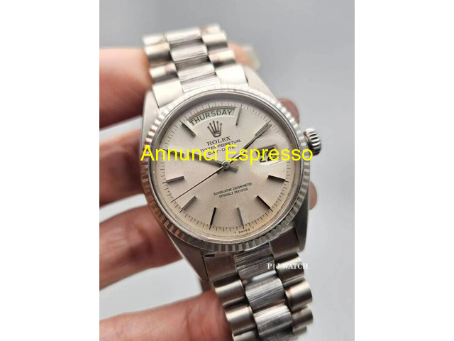 Replica Rolex Day-Date prezzo EUR.195,00 Orologio automatico Replica Rolex Day-Date, cinturino president in acciaio inox, quadrante argento con indici, movimento meccanico automatico 2813, vetro zaffiro antigraffio. Nuovo mai indossato, resistente all'acqua. Modello classico e elegante, perfetto per ogni occasione. Torino (TO)