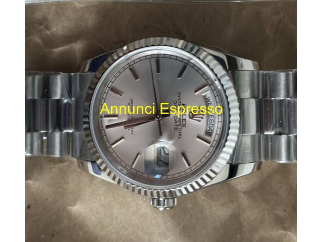 Replica Rolex Day-Date prezzo EUR.190,00 Orologio Rolex Datejust Replica in acciaio inox. Quadrante argentato con indici e lancette lucidi. Datario a ore 3. Bracciale President. Condizioni nuovo mai indossato, ideale per collezionisti e amanti del lusso. Modello elegante e resistente. Torino (TO)