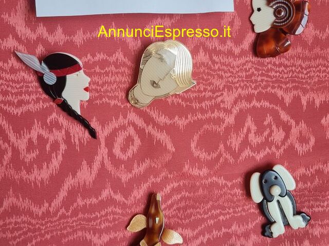 Spille di Léa Stein Paris vintage prezzo EUR.68,00 Collezione Spille di Léa Stein Paris vintage mai indossate , realizzate in acetato di celluloide laminato . Marchio visibile sul retro della spilla . Vendo ? 68 cadauna . Gradito contatto telefonico [NUM] Lodi (LO)