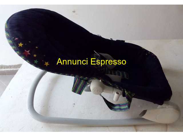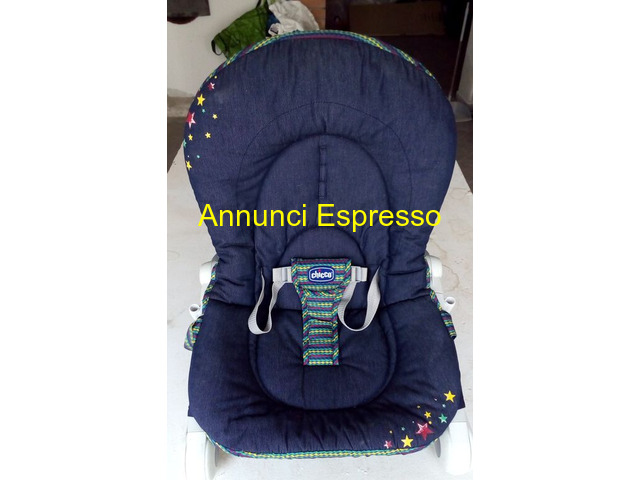 Sdraietta Chicco reclinabile pu? essere fissa prodotto per l\'infanzia Fascia di età 0-12 mesi prezzo EUR.20,00 Sdraietta Chicco reclinabile pu? essere fissa o essere a dondolo usata poco e sanificata utilizzo 0-9 kg ritiro su Grosseto o spedizione. Seggiolino per bambini, colore blu scuro con dettagli colorati, dotato di cinture di sicurezza, materiali morbidi, in buone condizioni. Grosseto (GR)