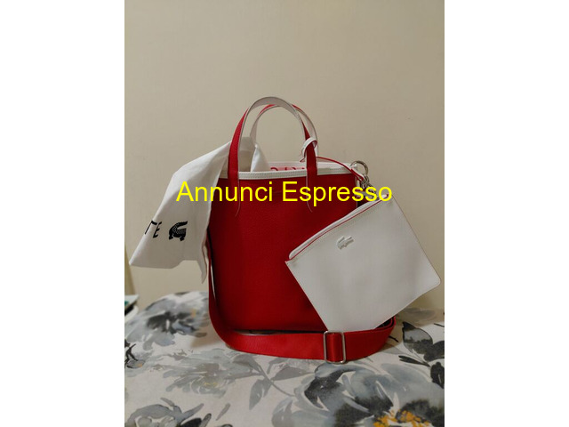 Borsa donna Lacoste prezzo EUR.50,00 Borsa shopping Lacoste adatta per uso quotidiano, come nuova, rossa, con tracolla in tela rigida e porta documenti grande estraibile. Condizioni eccellenti, con custodia in stoffa, firmata. Roma (RM)