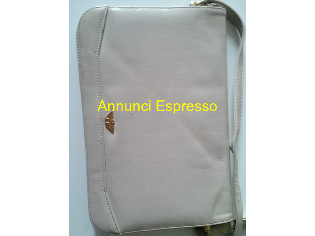 BORSETTA VINTAGE BI. prezzo EUR.9,00 BORSETTA ANNI 60 IN PELLE BIANCA CHIUSURA A CLIP MISURE L. 24, 5 X H. 16, 5 X P. 3 TRACOLLA REGOLABILE FINO A CM. 110 INTERNO CON 3 SCOMPARTI ALCUNI SEGNI DI USURA SONO DISPONIBILE PER INF. FOTO POSSIBILE SPEDIZIONE Matera (MT)