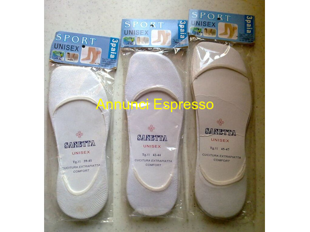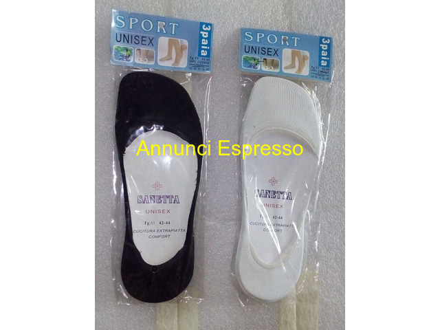 Calzini Fantasmini 300. Pezzi varie misure stock prezzo EUR.150,00 Stock Calzini Fantasmini 300. Pezzi 100 confezioni costo 150? varie misure: 65 pz. bianchi 39-41, e pz. 4 neri, 13 Pz. bianchi 42-44 e 4 pz. neri, 13 pz. bianchi 45-47. tutti e nuovi sigillati, sono 3 paia a confezione. Pi? Stock Collant Donna di 100 pezzi di marca nuove in box e custodia, mai aperte, mai usate, vari modelli e misure della marca Levante collant donna e bambina elasticizzato 15 den cuciture piatte in box tutte sigillate. Modelli SHADE colore grigio misura 1? n 7 pz. e misura 4? n?7 pz. SHADE Colore Londra mis. 4? n? 68 pz. SHADE Colore Fumo mis. 1? n? 12 pz. mis. 3? n? 24 pz. mis. 4? n? 13 pz. SHADE Colore Nero mis. 4? n? 14 pz. Trattativa anche anche per pochi pezzi. 1? in blocco, o 2? cadauna a scelta, ritiro su Grosseto o spedizione. set di tre paia in bianco, nuove e confezionate, taglie diverse Grosseto (GR)