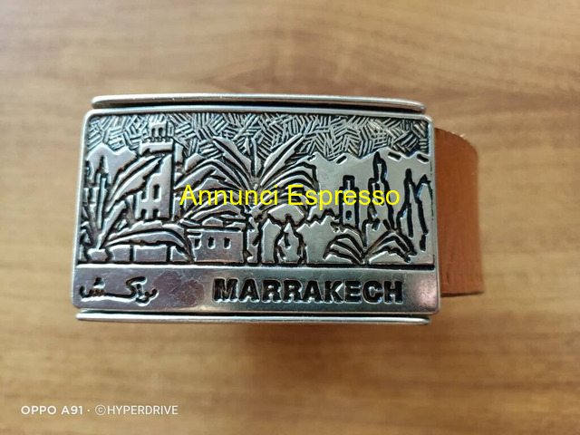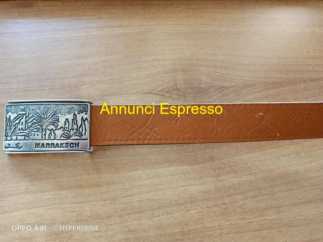 CINTA MARRAKECH prezzo EUR.19,00 CIUNTURA IN CUOIO ANNI 60 CON DECORAZIONI A PRESSIONE PALMA CAMMELLO SCIABOLE FIBBIA CREAZIONI DELFINO RAFFIGURANTE MARRAKECH CON SCRITTA LUNGHEZZA CM. 105 ALTEZZA MM. 35 SONO DISPONIBILE PER INF. FOTO POSSIBILE SPEDIZIONE Matera (MT)