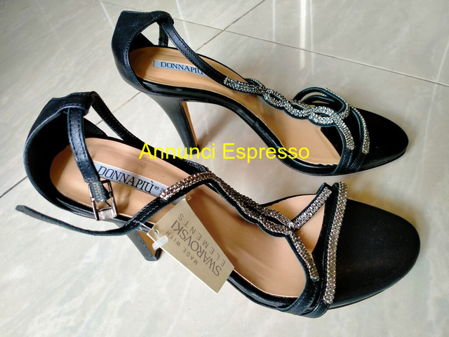 decolleté Camper,sandali Donnapiù con Swarovski 37 prezzo EUR.50,00 Vendo decolleté Camper da donna numero 37 in puro cuoio, sandali Donnapiù numero 37 in pelle nera impreziositi da elementi Swarovski: entrambe solo provati ma mai utilizzati in quanto doppio regalo, perfetti e come nuovi a 50? ciascuno. Scarpe modello Mary Jane, colore nero, tacco basso, cinturino. Materiale sintetico, taglia non specificata. Ideali per occasioni formali o casual. In buone condizioni. Milano (MI)