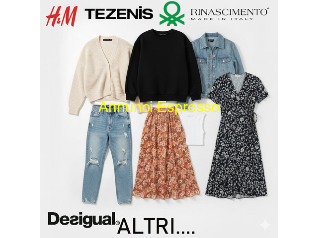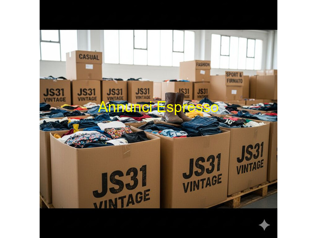 STOCK ABBIGLIAMENTO VINTAGE A partire 4?/KG! prezzo EUR.4,00 Scopri il miglior assortimento di abbigliamento usato all?ingrosso: casual, fashion, firmato e sportwear Perfetto per negozi vintage, mercatini e rivenditori, con capi selezionati di alta qualità europea Cosa trovi nei nostri stock: ? Capi firmati: Armani, Levi?s, Nike, Adidas, Ralph Lauren e altri ? Casual & Fashion mix uomo/donna: Zara, H&M, Mango e simili ? Sportwear europeo ? Tutti i capi sono usati ma in ottime condizioni, Quantità disponibili: da 100kg fino a 1000kg Prezzo imbattibile: a partire da 4?/kg Spedizioni in tutta Europa Scopri di più su www. js31vintage. it Contattaci su WhatsApp [NUM] JS31 VINTAGE ? Il tuo partner per l?ingrosso vintage di qualità! Pesaro (PU)