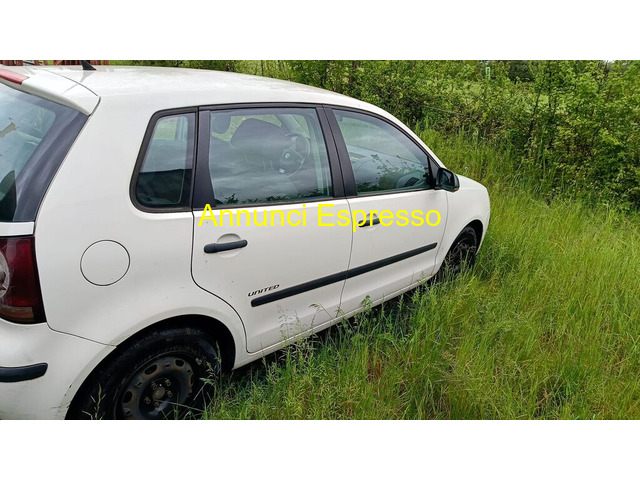 Volkswagen Polo 5ª serie UNITED 1200 5P Utilitaria 1200cc alimentazione benzina immatricolata 2009 Settembre colore bianco 180000Km Euro 4 60CV prezzo EUR.1.000,00 cambio manuale 5 porte 5 posti anteriore tessuto VENDESI VETTURA ANNO 2009 MARCIANTE MA CON PROBLEMA AD UNA VALVOLA DEL MOTORE. L'AUTO HA AVUTO DUE PROPRIETARI E HA CIRCA 180. 000 KM ED IN STATO MANUTENTIVO CARENTE, L'OFFERTA NON E' PRETENZIOSA, E' PARCHEGGIATA ATTUALMENTE IN PROPRIETA' PRIVATA E POSSIBILE VISIONARLA E PROVARLA. Campi Bisenzio (FI)