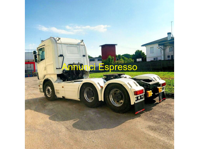 Alimentazione diesel R 480 LA 6x4 MNB 480CV Altro Scania prezzo EUR.37.000,00 immatricolata 2013 cambio automatico sequenziale 498000Km Euro 6 TRATTORE SCANIA R480 LA 6X4 MNB - PASSO 3. 100 + 1. 350 - MOTORE 6 CILIMDRI DA 12. 740 CC. - CABINA LETTO CP 19N - ANNO 04/2013 - UNICO PROPRIETARIO - EURO 6 - CAMBIO AUTOMATICO - CRUISE CONTROL - CLIMATIZZATORE - VETRI ELETTRICI - AUTORADIO - WEBASTO - SEDILI IN PELLE - SOSPENSIONI PNEUMATICHE INTEGRALI -BLOCCAGGIO DIFFERENZIALI - RIDUTTORI AI MOZZI - CERCHI IN LEGA - RETARDER - IMPIANTO IDRAULICO PER SEMIRIMORCHIO PESO SUGLI ASSALI: 8. 000 ? 9. 500 ? 9. 500 VEICOLO GOMMATO - TAGLIANDATO - IN PRONTA CONSEGNA. Vigonza (PD)