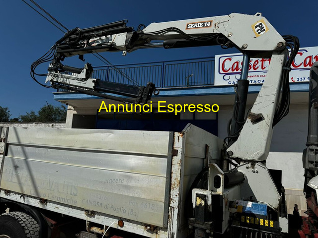 Autogru Iveco FIAT 240.36 CON CASSONE F alimentazione diesel prezzo EUR.100,00 immatricolata 1990 1Km X INFO: DOMENICO GRAZIE RIF. 1561 IVECO FIAT 240. 36 CON CASSONE FISSO+GRU ALTEZZA 19. 30, PM SERIE 1470 Q. LI, 3 SFILI+JIP 2 SFILI CON 4 PIEDI STABILIZZATORI ANNO 1990 PASSO 4200 RADIO CAMBIO MANUALE TETTUCCIO GOMMATO 80% MISURE CASSONE FISSO; LUNGHEZZA MT. 5. 20, LARGHEZZA MT 2. 50, ALTEZZA SPONDE 0. 80 CM Camion con braccio telescopico, estremit? alta, ideale per lavori in altezza. Marca e modello non specificati. Buone condizioni generali. Andria (BT)